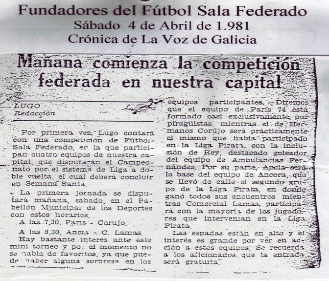 en 1978 nuestra andadura por el fútbol sala lucense, y pasaría a ser sin ninguna